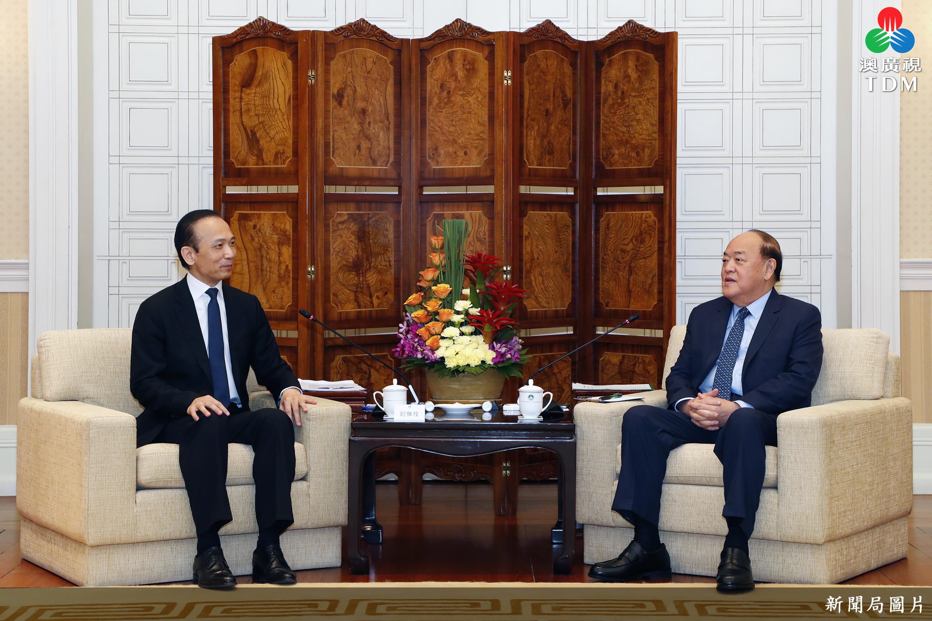 【本報(bào)消息】新聞局訊:行政長官賀一誠昨日在政府總部會見澳門歸僑總會會長劉雅煌一行,雙方就僑界支持澳門經(jīng)濟(jì)適度多元發(fā)展,助力國家“一帶一路”建設(shè),融入國家發(fā)展大局等議題交換意見。