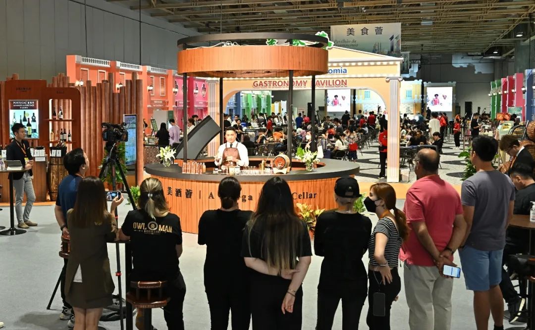 同場設(shè)“美食薈”,18家本地美食展商參展,本屆亦首設(shè)“美酒薈”,來自內(nèi)地、香港和澳門共16間酒商參展,銷售美酒及相關(guān)產(chǎn)品。“美酒薈”現(xiàn)場設(shè)有葡萄酒釀製工藝介紹入門證書課程、品酒工作坊、澳門啤酒製作工藝及知識講解會和澳門啤酒競飲大賽等活動讓公眾參與,反應(yīng)踴躍。澳門六家綜合度假休閒企業(yè)的調(diào)酒師帶來創(chuàng)意調(diào)酒表演,氣氛熱鬧。