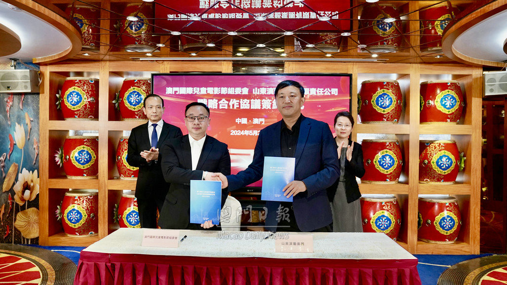 活動期間,山東演藝集團(tuán)分別與澳門萬國控股集團(tuán)、澳門國際兒童電影節(jié)組委會、澳門山東文化交流協(xié)會簽署戰(zhàn)略合作協(xié)議,王磊和劉雅煌見證簽約。
