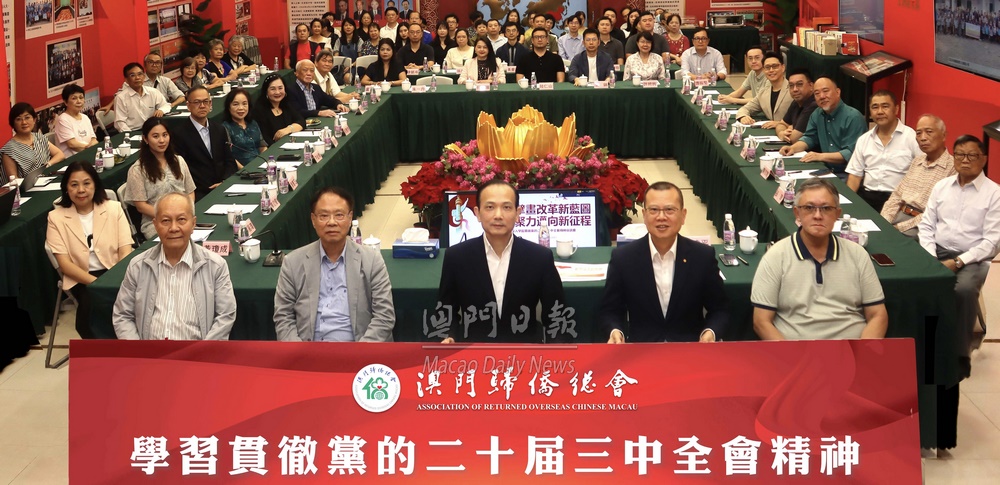 【澳門日?qǐng)?bào)消息】澳門歸僑總會(huì)於7月31日下午6時(shí)在會(huì)址舉行“學(xué)習(xí)貫徹黨的二十屆三中全會(huì)精神座談會(huì)”。